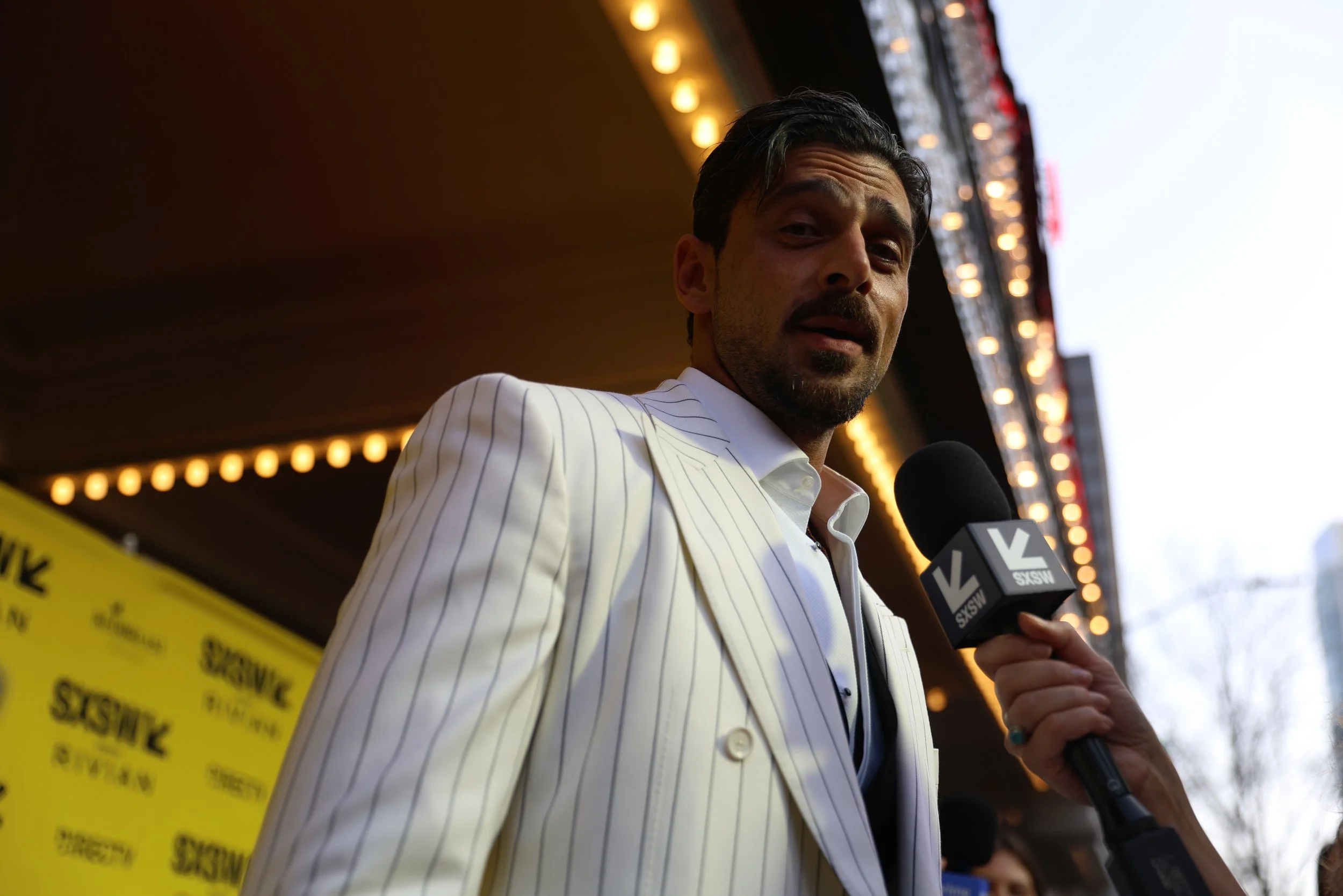 Actor Michele Morrone talks to a member of the SXSW Media Team on the red carpet of "Another Simple Favor" at the Paramount Theatre March 7, 2025.
