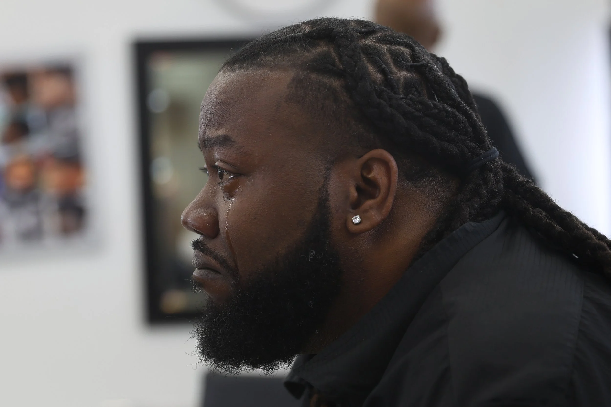 John “Speedy” Riddle cuts the hair of patrons during an interview at a Shaving Grace barbershop in southeast Houston July 9, including fellow New Orleans native Germaine Moore and Houston Public Media reporter Dominic Anthony Walsh. Riddle and Moore discussed their experience in New Orleans during Hurricane Katrina on the eve of the storm’s 20th anniversary, lamenting on the city’s legacy and how they work to share that culture with their new home, Houston.